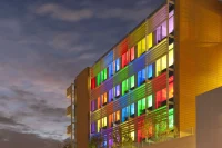 The Nemours Children’s Hospital, designed by Perkins+Will in collaboration with Stanley Beaman & Sears, is a 630,000-square-meter healthcare facility. Designed with the motto of creating a healing environment that will reassure parents and delight children, the hospital serves as a treatment center for children with chronic diseases from infancy to adulthood while also treating complex medical diagnoses and life-threatening illnesses. The hospital features 95 inpatient beds, 76 exam rooms, emergency care facilities, a central energy plant, a parking garage, overnight accommodations for two parents, and laundry facilities. Its spacious corridors and playrooms overlook and provide access to landscaped rooftop terraces, a discovery garden, and an outdoor community event stage for live performances.