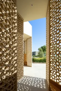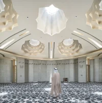 X Architects have opted for GRC for the dome panels, the perforated façade systems, the opaque walls, and other finishes owing to its lightweight, environmentally friendly nature, minimizing waste and transportation energy, and flexibility to craft intricate designs like the elaborate Islamic pattern on the walls.