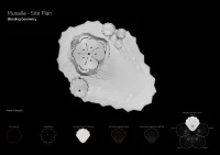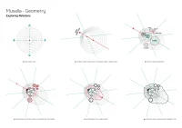 The resulting module was then repeated five times radially around a star forming the dome of the main prayer hall symbolizing the five daily prayer times. This main prayer hall’s dome plan overlapped on another geometric pattern, forming the multi-layered rippling geometric landscape design, integrating other ancillary facilities, and forming the overall plan, which was then extruded to form the mass of the mosque. The main prayer hall was located closer to Qibla, again off-centered from the landscape composition, similar to the off-centered skylights on the roof modules.