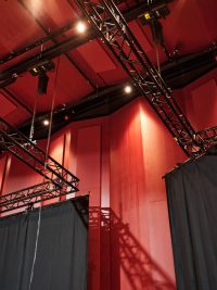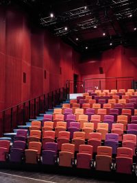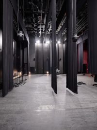 In its new home in Čoarvemátta, the theatre is located centrally in the building, which enables a close synergy between the school’s workshops and the theatre’s support areas. The main access to the main hall is from the vestibule, with an alternative entrance directly from the forecourt. This provides a close connection to the outdoor theater amphitheater located in the southern part of the area. Changing rooms, green room, and make-up are located on level 1 with close access to the main hall. Other premises for the theatre’s employees are located on level 2, where there is direct access to the technical balcony in the main hall.