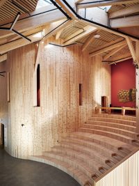 The National Reindeer Herding School was merged with the Sami High School in 1988. Five years later, Beaivváš was given the status of one of Norway’s four national theatre institutions. Since then, the school and the theatre have been of great importance to Sami culture and education, but both have also been in need of new premises for a long time. The co-location means that the institutions can take advantage of each other’s facilities and jointly operate robust, spacious halls and rooms. The building facilitates synergies between building and user, theater and school, and architecture and landscape. This is in line with the Sami ideology of taking care of and using all resources.