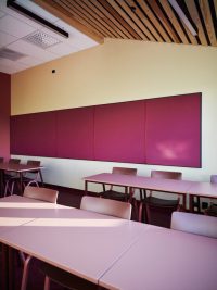 The school has a strong desire to showcase the students’ constantly new works both for the benefit of the school itself and for visitors. Larger wall panels and hanging surfaces have therefore been set aside for this purpose in several places in this building, preferably where many can benefit from it.