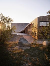 We wanted the building to be as close to nature as possible. Natural materials such as wood and stone are used, the building follows shapes in the terrain, and the roof is pulled down to the ground to meet the landscape. The elongated, continuous shape can give associations to carvings in a subject, such as a tool made of reindeer horns.