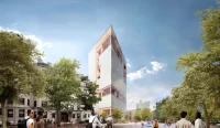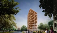 Rising to 186 feet, the new home for the Frederick S. Pardee School for Global Studies will be the tallest mass timber tower in the Northeast United States. The Pardee School for Global Studies collaborates with local governments and advocacy groups worldwide to develop strategies for a more sustainable economic, social, and environmental future.