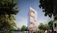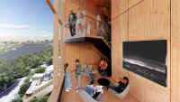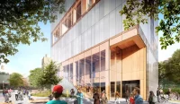 Rising to 186 feet, the new home for the Pardee School for Global Studies will be the tallest mass timber tower in the Northeast United States. It will house event and conference facilities, classrooms, faculty offices, and social spaces. Research centers converge around double-height “living rooms” for informal gatherings and community-building, connected by a social stair. This vertical collaboration network will broadcast the school’s internal activity along the building’s facade.