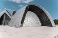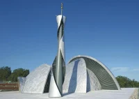The distinguishing feature of this mosque that sets it apart from other mosques is its form featuring unprecedented entangled domes that give the Islamic Center an artistic touch. Complimented by a spiraling minaret, a pedestal on which the Mosque sits, and accentuated contours of the domes studded with stainless steel plates, the original design envisioned by sculptor Dusan Dzamonja was only enhanced by Architects Darko Vlahovic and Branko Vucinovic.
