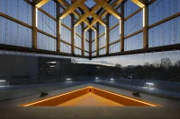 Further enhancing its sustainable credentials, the Pavilion reduces energy consumption by minimizing air-conditioned spaces. The majority of the interior functions as a semi-outdoor area, reminiscent of traditional Japanese verandas (engawa), providing natural ventilation and substantially decreasing cooling demands. Complementing this sustainable approach, the Pavilion employs gentle, subtle illumination, creating a nuanced interplay of light and shadow in line with Japanese aesthetic traditions emphasizing the beauty of darkness.