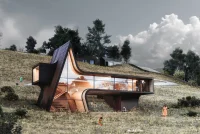 This initiative invites twelve international architects to create distinctive living spaces on a shared site of 11,000 square meters, offering visitors the opportunity to experience architecturally significant environments amid the breathtaking mountainous landscape of Voronet. Madjdabadi takes the archetypal image of a hut as the starting point for her design of a house in Voronet Park. By transforming this familiar form, she creates a bold new vision that is both rooted in tradition and resolutely contemporary.