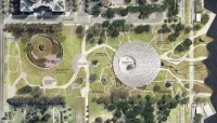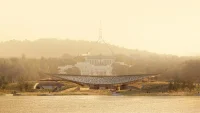Held between the sky and the earth, the central plaza creates a new cultural and community room for Canberra, a place of welcome for ceremonies, community events, and functions. The National Resting Place is designed as a private ceremonial building, an indentation into the rolling ground that forms a soft counterweight to the floating form of the Cultural Centre’s canopy.