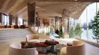 Most of this massive expansion is expected to be completed by the 2025-2026 winter season to open the upgraded facility to the public. The development peeping from behind the slopes and between the trees with its angular facades stepped floors, and natural materials blending with the ridges in the uneven landscape makes the East Village surreal, providing a transcending experience even with a mere glimpse of its renders.