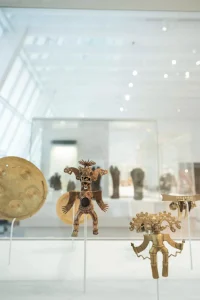 The gallery for Oceanic art includes monumental slit gongs from Vanuatu and intricately carved spirit figures from Papua New Guinea, each displayed with visual breathing room and supported by multimedia contextual aids. Nearby, the African galleries showcase the power of masquerade traditions with dynamic installations that suggest movement and community participation, rather than isolating the objects on plinths.