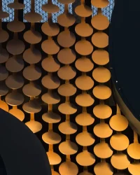 At the core of this design is MetaSequin, a modular, reflective parametric facade element that interacts with natural elements such as wind and light, creating a facade that is playful and in constant dialogue with its surroundings. These circular sequins introduce a dynamic surface quality, making the facade shimmer and change throughout the day and night.