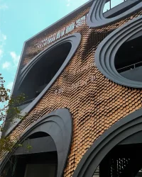 Meticulously designed and engineered, the concave panels with varied curvature and thickness carve out bold, sculptural gestures that echo the natural rhythm, which showcases the plantation and life happening inside the building.