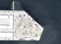 The main idea is that the division between the rotunda and the wharf enables a third space: The space in between where the public space of the city and the private space of the building fuse into a combined setting. Where the entire harbor space and the city skyline can be experienced in a 360-degree view, breaking up the more intimate space of the harbor promenade.