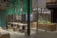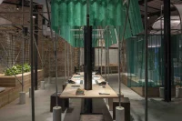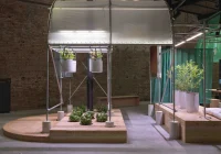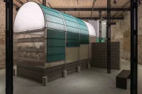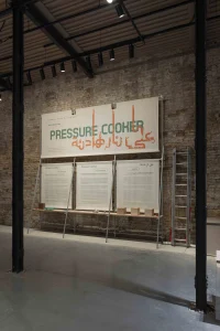 Complementing the installation is a publication titled Pressure Cooker Recipes: An Architectural Cookbook, edited by Aboualam and published by Kaph Books. The book uses the format of a cookbook, divided into five chapters, to present essays, archival research, and design reflections that bridge architecture and sustainable agriculture. Contributors include leading thinkers such as Huma Gupta, Elisa Iturbe, and HOME-OFFICE, among others.