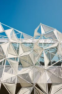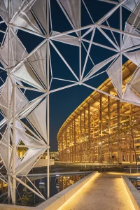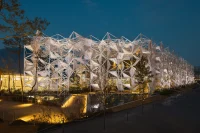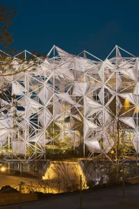 Designed by Yuko Nagayama & Associates with Ove Arup & Partners Japan, the Women’s Pavilion features a repurposed Kumiko-inspired facade originally seen at Expo 2020 Dubai. The structure integrates sustainable practices such as the use of Clean-Crete, electric furnace steel, and the PROMIE system, cutting CO2 emissions by up to 60%.