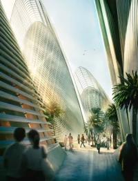 Conceptually unveiled in 2010, the museum’s design features five insulated stainless steel towers, each resembling the wings of a falcon, a symbolic representation of Sheikh Zayed’s affection for falconry. Ranging from 83 to 123 metres in height, they act as solar thermal chimneys offering aesthetic and functional purposes. These towers utilize the thermal stack effect, naturally ventilating the museum by drawing hot air upwards and allowing cooler air to enter through underground pipes. It illustrates the fusion of ancient wisdom, the UAE’s culture and cutting-edge technology, echoing the vision of Abu Dhabi, a city of innovation.