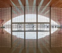 Located on Line 15 of the Beijing Subway network within the city’s Shunyi District adjacent to Capital International Airport, the CIECC’s central north-south axis serves as the primary connector between the nine exhibition halls, providing navigational clarity, maximum flexibility, and efficiency as well as creating a central courtyard and gathering place within sheltered outdoor event spaces and landscaped gardens.